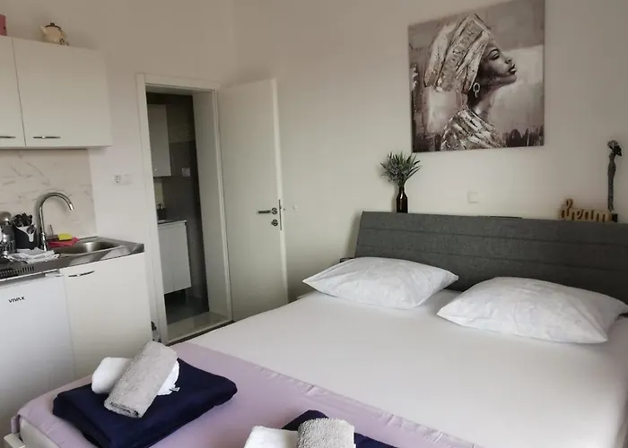 Lejlighed ligger i Baška Voda, 5 minutters gang fra centrum. Europæiske, middelhaves og kroatiske retter serveres i Restaurant Victoria. Denne ferielejlighed står ved siden af Church of St. Lawrence.